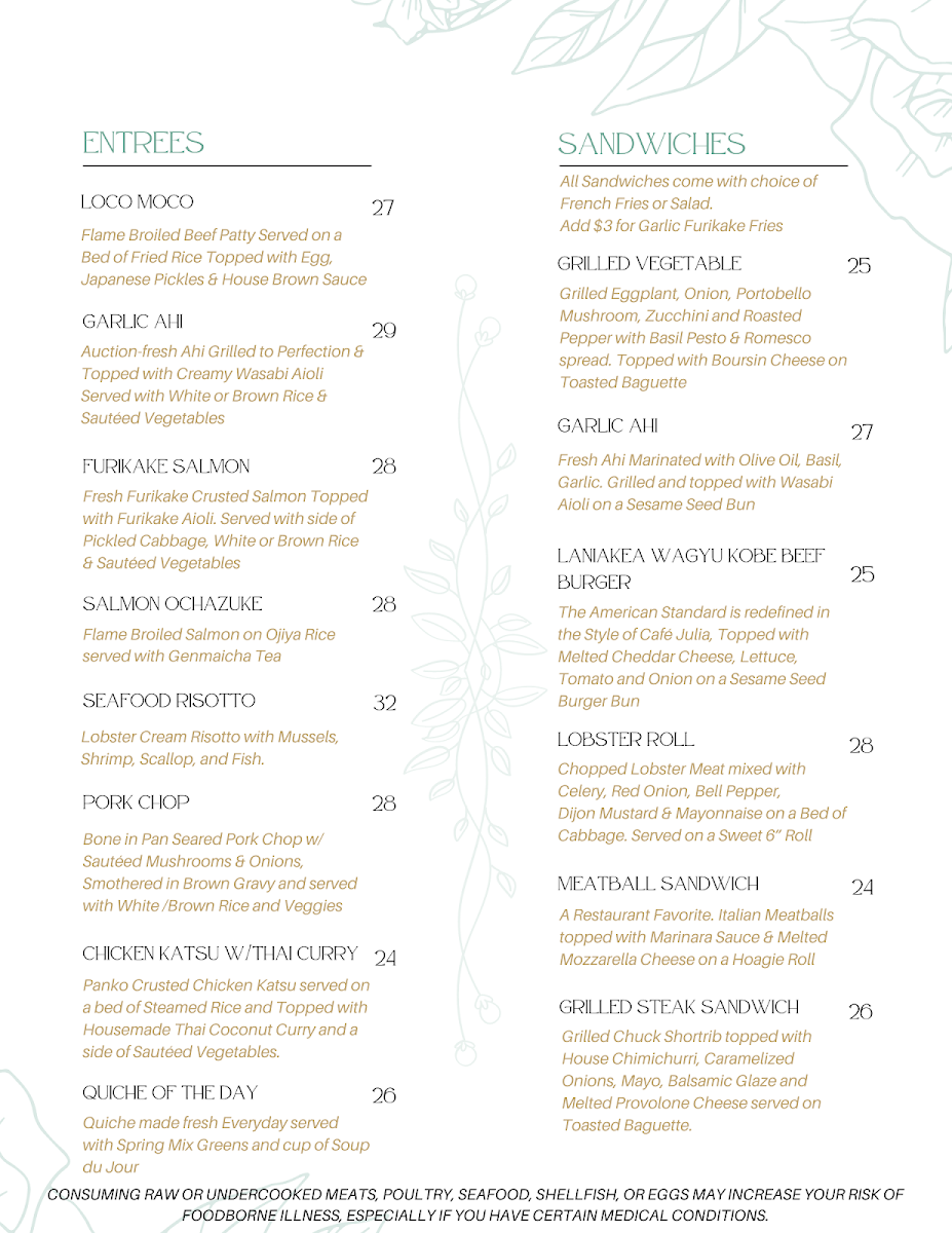 Welcome to Café Julia Hawaii, a culinary gem tucked away in the heart of Honolulu. Upon entering, you are greeted by a stunning venue that blends beautiful architecture with a delightful ambiance. The menu showcases an array of fresh, flavorful dishes that celebrate the vibrant spirit of Hawaii.